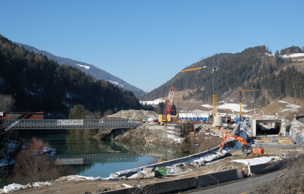 Zehn Tage dauerte die Odyssee. In 37 Fahrten, die meisten davon Sondertransporte, wurde das Gerät angeliefert. Nun steht der wohl schwerste Arbeitskollege beim Bauvorhaben „Neue Einfahrt ins Gadertal mit Rienzbrücke und Tunnel Pflaurenz“ bereit. Der Raupenkran des Typs Teres CC2800 verfügt allein schon über ein Leergewicht von 600 Tonnen. Beim finalen Hub wird es dann auf ein gesamtes Kampfgewicht von sage und schreibe 950 Tonnen aufgestockt.